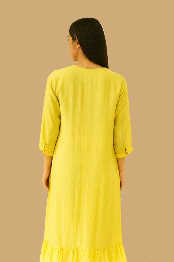 - Neck Design: Overlap collar with yoke embroidery
